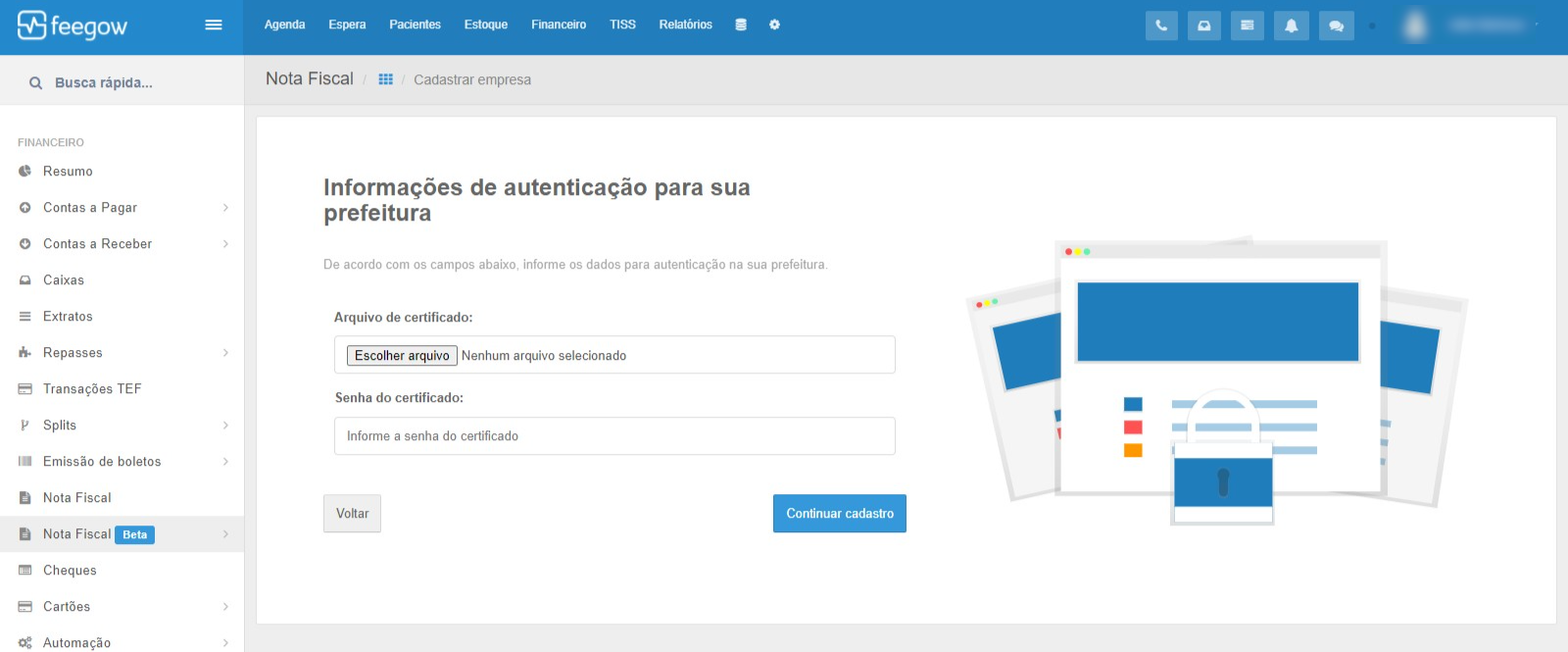 Como configurar o certificado digital para emitir NF-e pelo Feegow na modalidade 2.0.