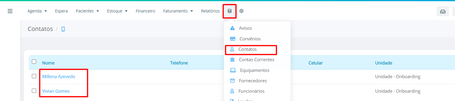 Neste campo a clínica pode cadastrar os seus contatos. Seu objetivo é centralizar os dados dos seus contatos (fornecedores/parceiros, sócios, instituições financeiras e etc) em um único campo, como uma espécie de agenda. Para utilizar essa função, será necessário ter a permissão de Agenda de Contatos.
