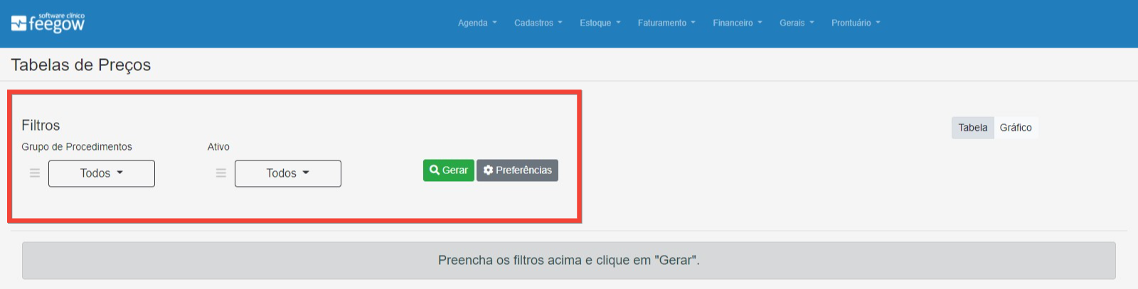 - Clicar na opção de Cadastros > Tabela de Preço.