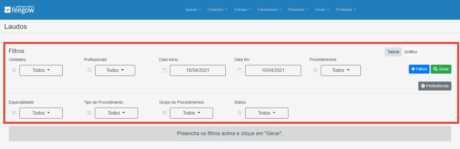 Neste relatório pode-se extrair o resultado dos laudos emitidos através do Feegow, trazendo a data de execução, a de previsão de entrega, se já foi entregue ou não, o procedimento, o profissional laudador e o número de protocolo.
