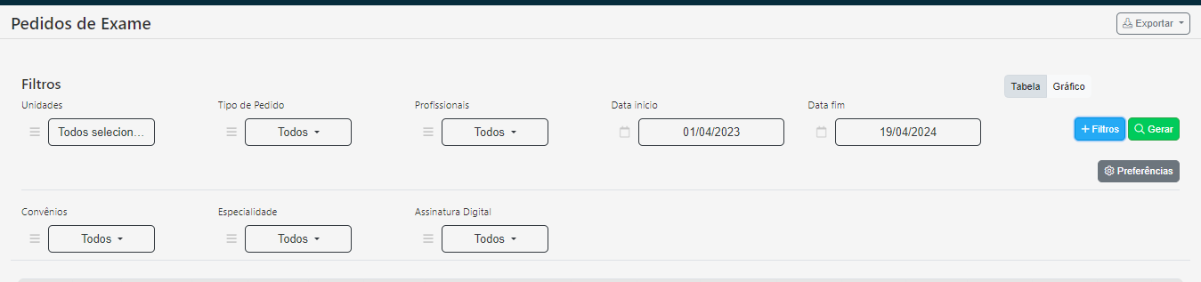 Exibe os pedidos de exames gerados como padrão ou por meio de SADT.