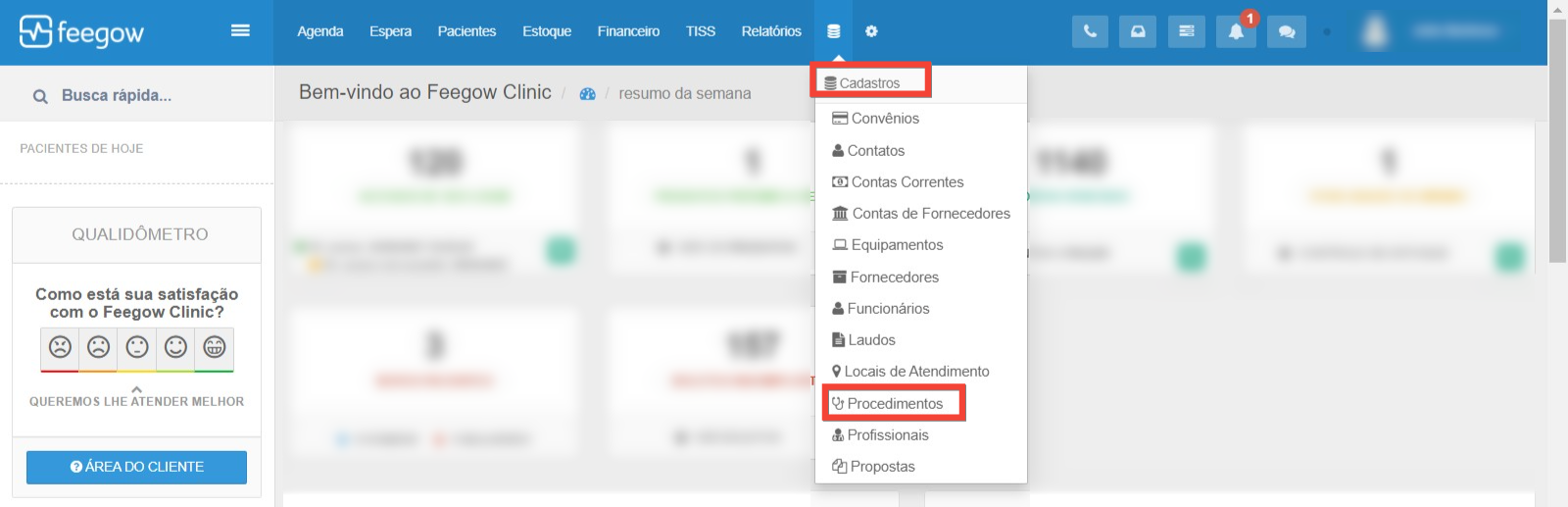 - O usuário deve ir em Cadastros > Procedimentos.
