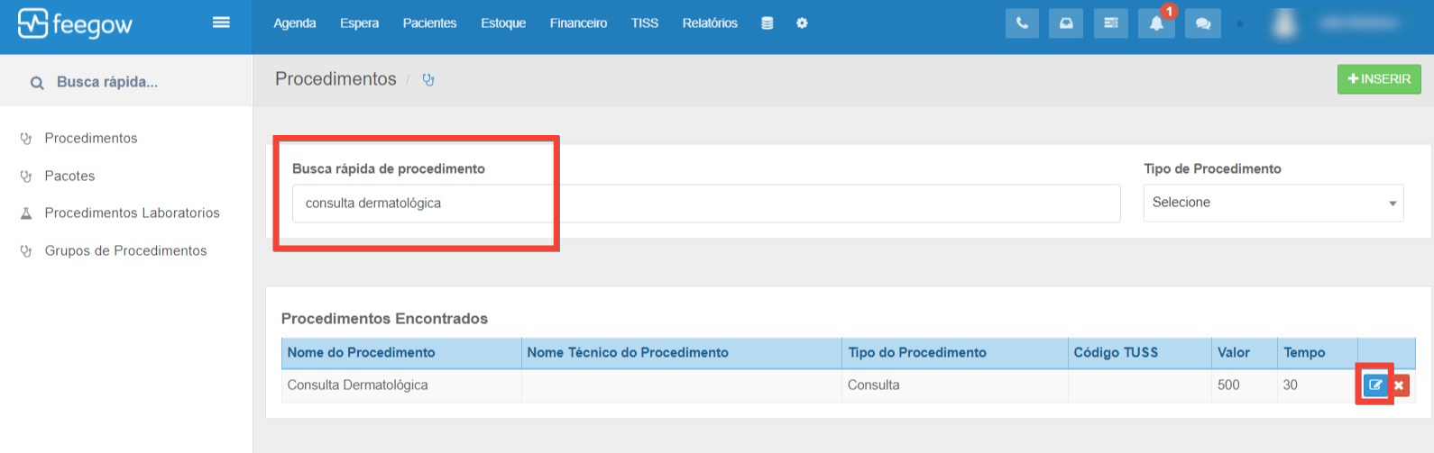 - Busque pelo procedimento desejado e clique para editá-lo.