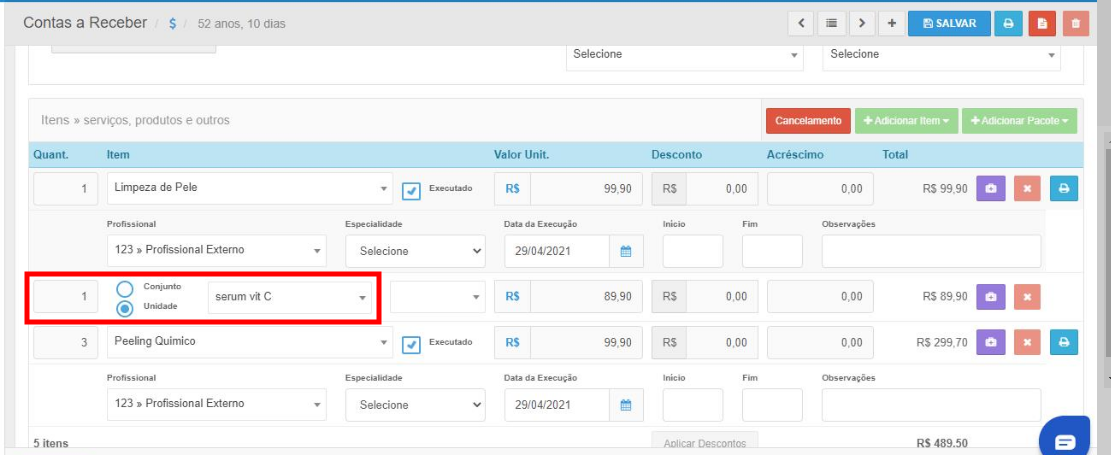 - Desta forma, para solucionar, é necessário gerar duas contas separadamente, uma com os produtos e outra com os procedimentos, visto que não será possível gerar a NF de serviço com um produto.