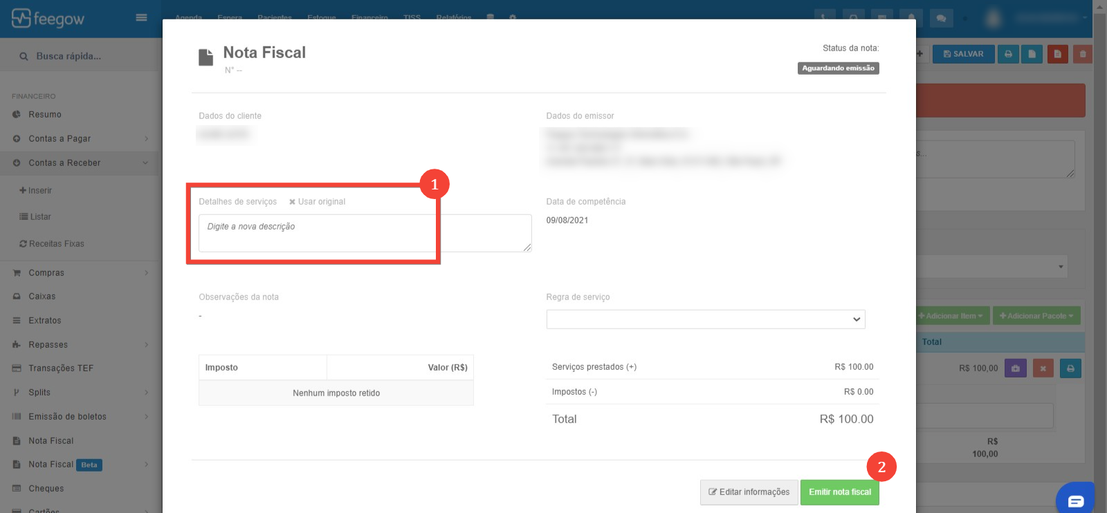 Quando o usuário indica que precisa modificar o emissor da NF e/ou descrição.