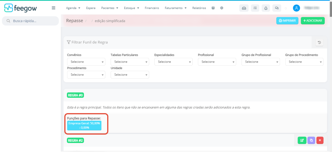 - Será necessário buscar pela regra de repasse que está configurada para esse caso.