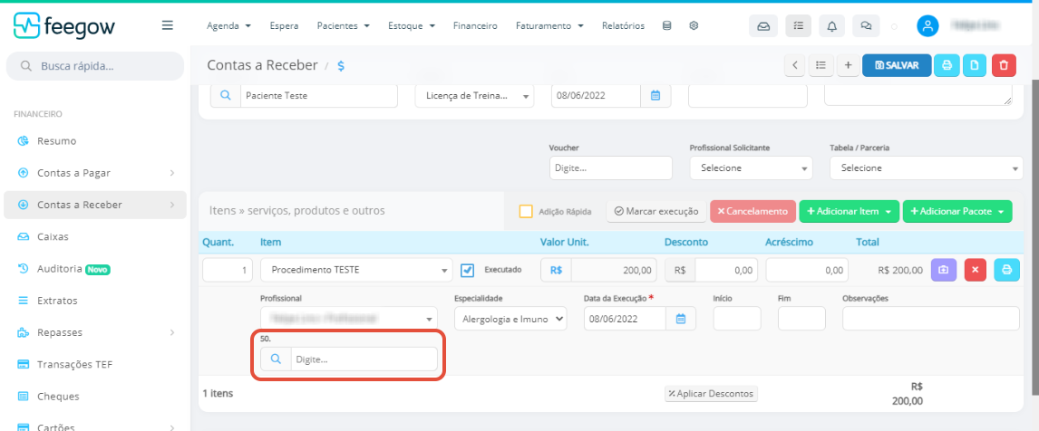 Quando na conta a receber de um procedimento constar dois campos para selecionar o executante: O campo padrão, onde será lançado o profissional que produziu o atendimento, e um segundo campo, onde será usado para repasse.