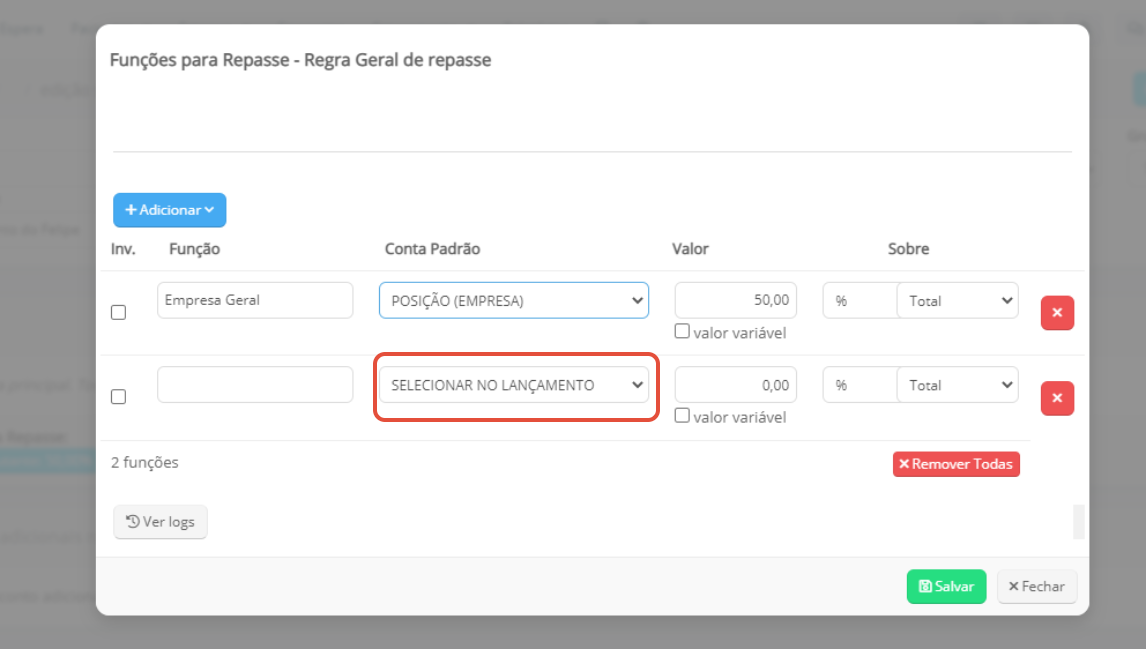 - Quando isto ocorrer, é necessário verificar a configuração da Regra de Repasse.