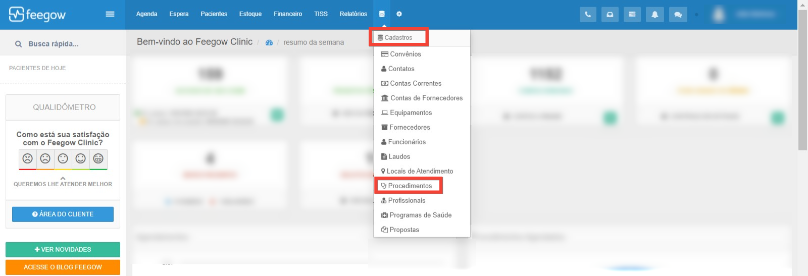 - É necessário ir em Cadastros > Procedimentos.