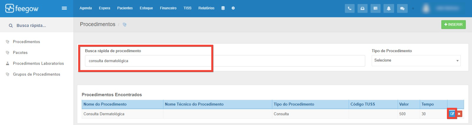 - Busque pelo procedimento desejado.
