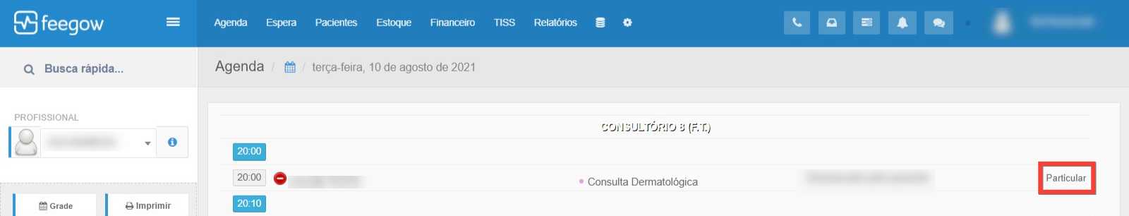 - Se desmarcar a permissão, o usuário não poderá visualizar os valores dos procedimentos e terá a visualização apresentada abaixo.