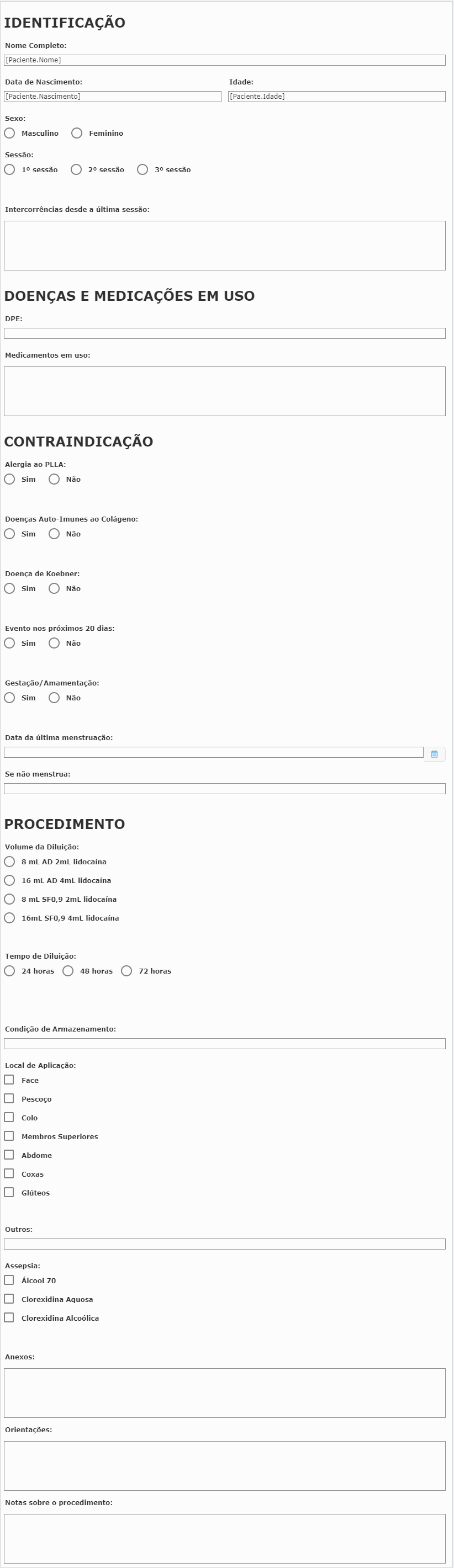 Caso tenha interesse neste modelo, entre em contato com nosso time de atendimento ao cliente e solicite o formulário DER006 - SCULPTRA para a sua licença.