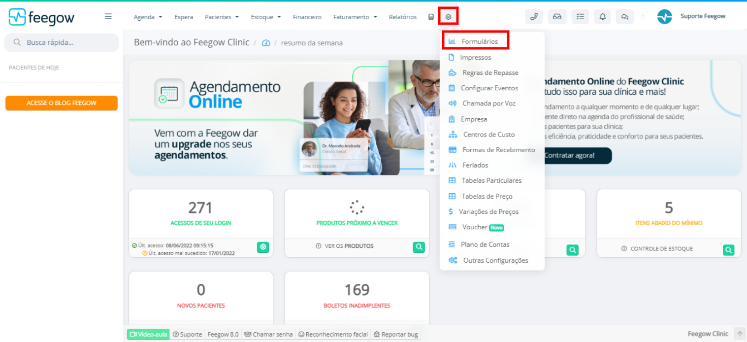 No Feegow é possível que o paciente preencha o formulário antes do atendimento e de forma online. Assim que preenchido, ficará disponível no prontuário do paciente.