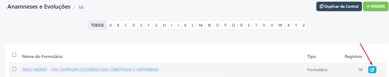 Observação: o formulário só irá aparecer no prontuário se enviado via sistema.