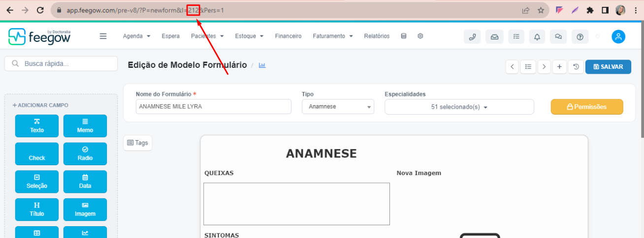 Código do formulário: é o código que identificamos no formulário que será enviado para o paciente.
