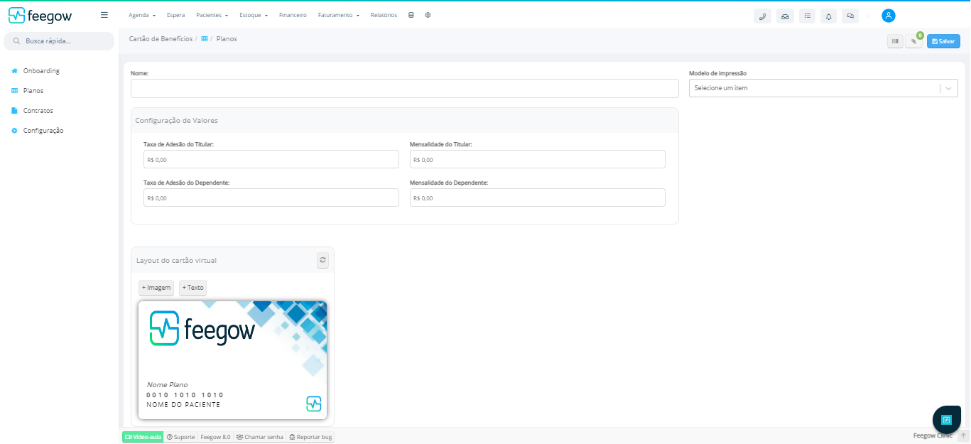 O Cartão de Beneficios é um serviço adicional onde a clinica consegue criar e gerir no Feegow seu clube de vantagens.