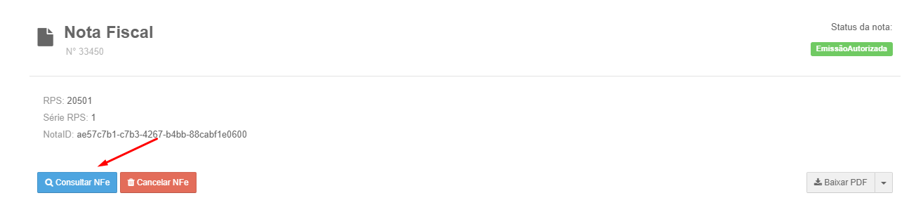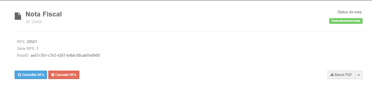 • Baixar o PDF / XML: Caso o status permita, baixar o PDF/XML da nota.