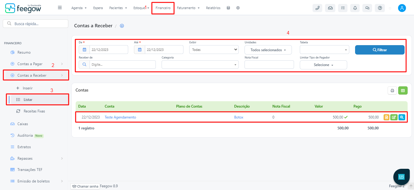 Dessa forma, a conta a receber terá sido lançada a partir do agendamento realizado.