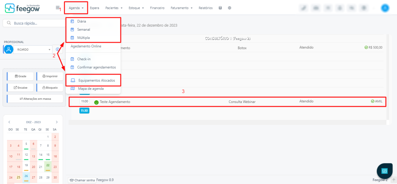 Observação: No relatório há diversos filtros e preferências para otimizar a visualização das informações, algo que pode ser mais interessante para gestão da clínica.