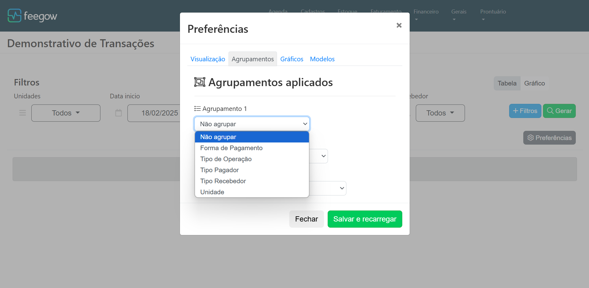Clique na opção de Financeiro > Demonstrativo de Transações.