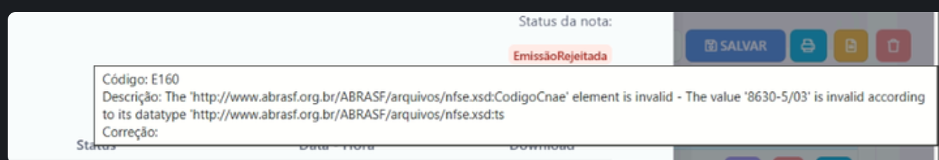 2. The 'http://www.abrasf.org.br/ABRASF/arquivos/nfse.xsd:CodigoCnae' element is invalid