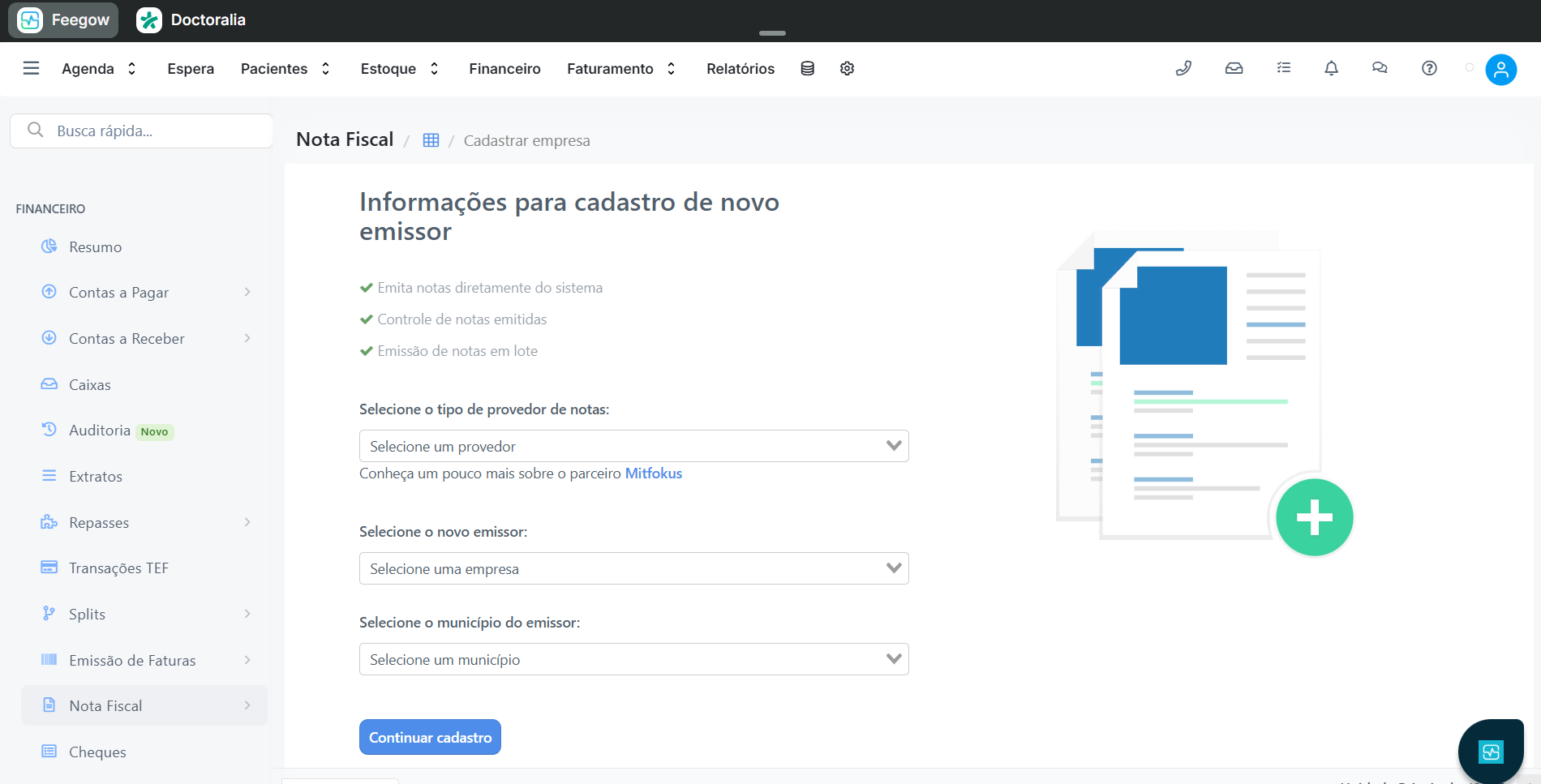 A configuração da Nota Fiscal de Serviços Eletrônica (NFS-e) no Feegow é uma etapa essencial para garantir a emissão correta dos documentos fiscais conforme as exigências da prefeitura do município da clínica.