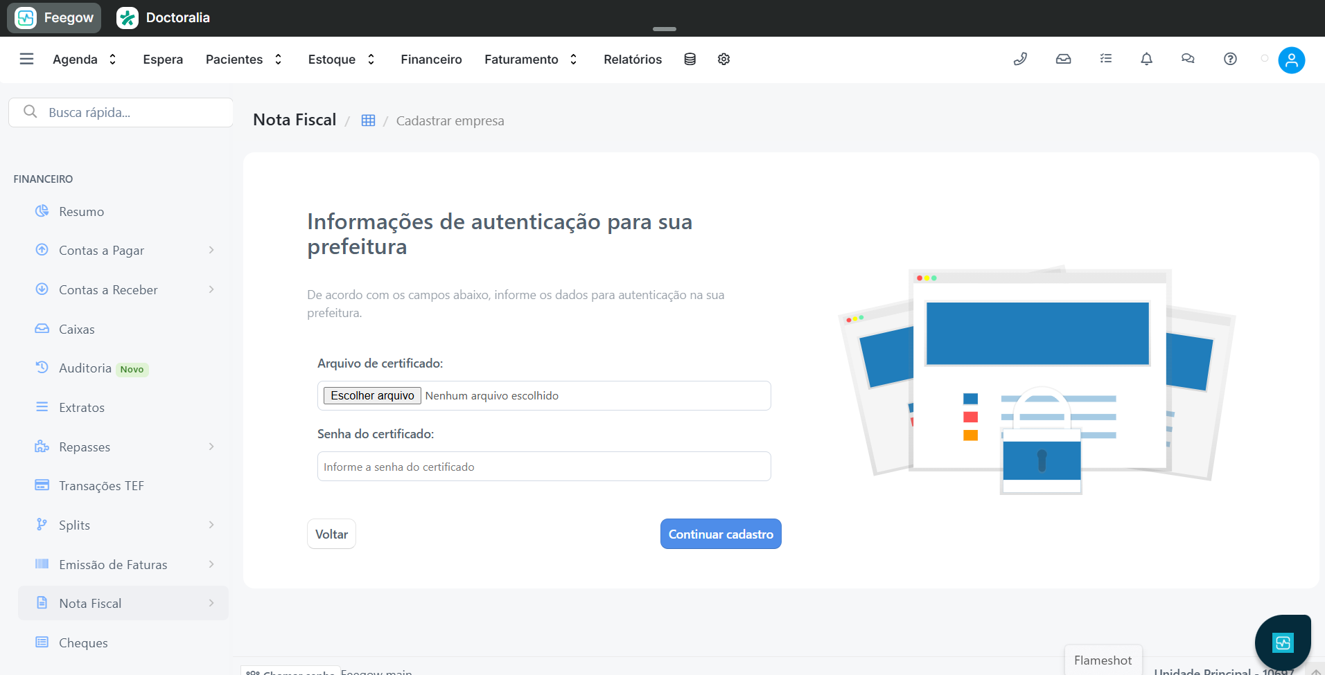 Como configurar o certificado digital para emitir a nota fiscal eletrônica pelo Feegow.