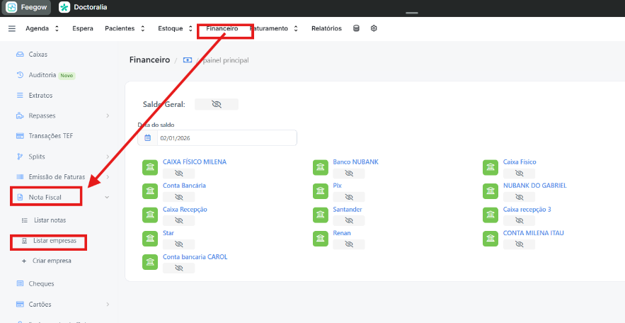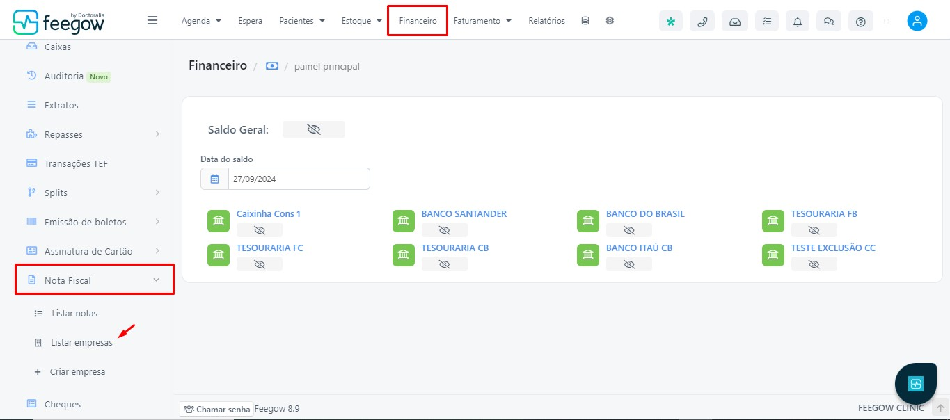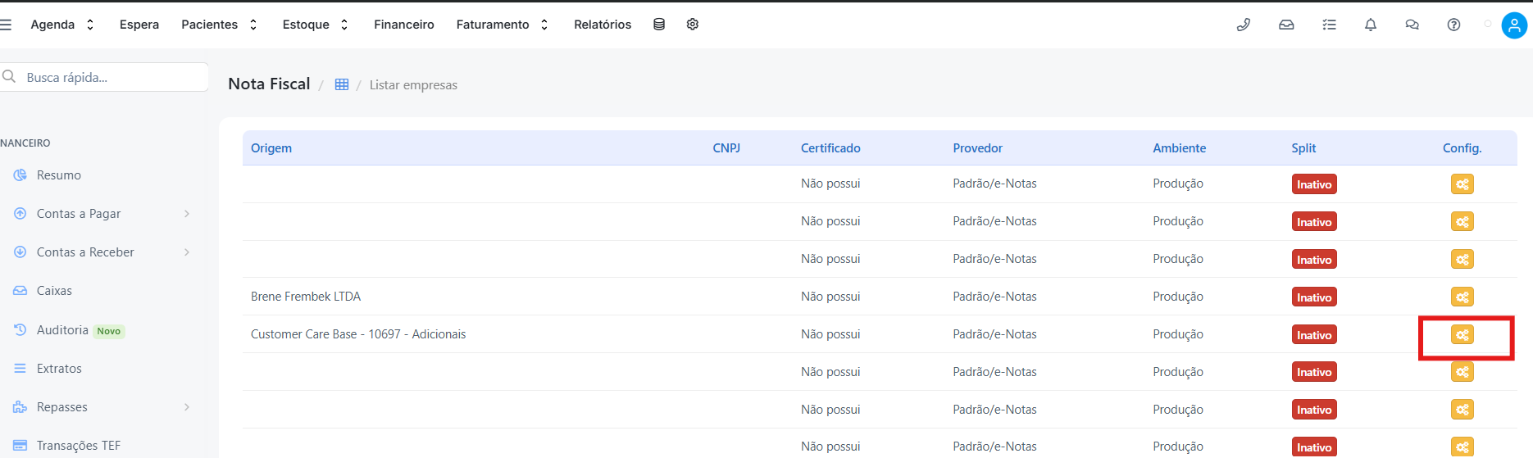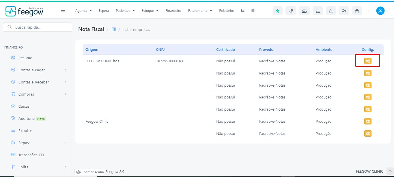 Financeiro > Nota Fiscal > Listar Empresas