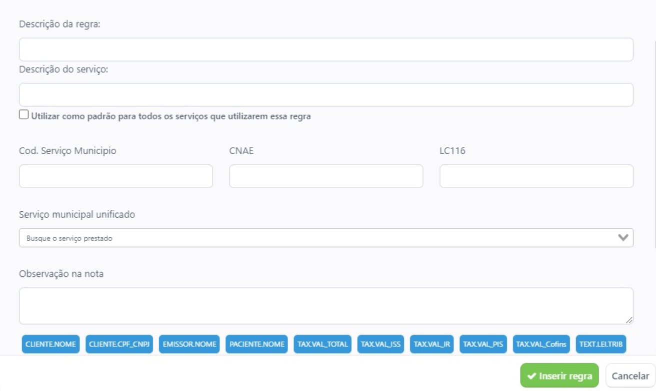 Descrição da regra: Uma breve descrição para facilitar na hora de selecionar a regra correta para emissão.