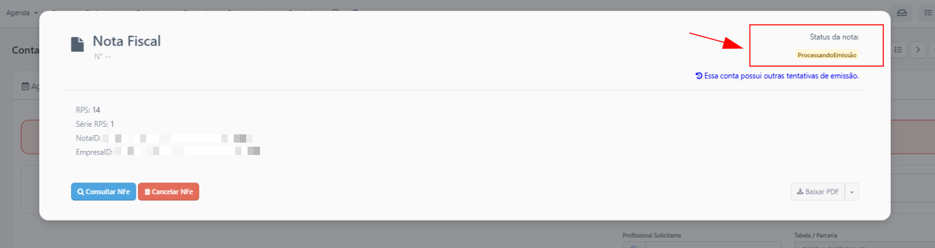 Nesses casos, a nota pode permanecer com o status “Processando Emissão” por mais tempo que o habitual.
