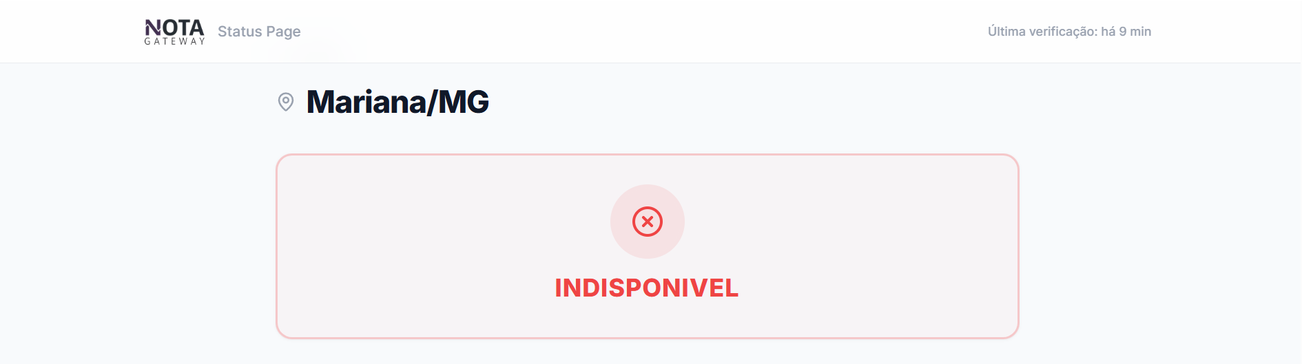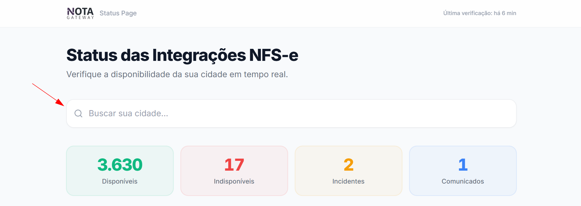 Caso tenha dificuldades para acompanhar o status de emissão em seu município, você pode verificar a disponibilidade do serviço por meio do link: https://statuscidade.notagateway.com.br/